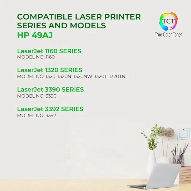 TCT offers quality HP 49AJ Q5949A compatible jumbo yield replacement cartridges that fit effortlessly into your printer. You will find crisp, clear prints with consistently dark tones and sharp images in every single print job. Get professional quality prints every time and save a bundle with True Color Toners high quality printing supplies!