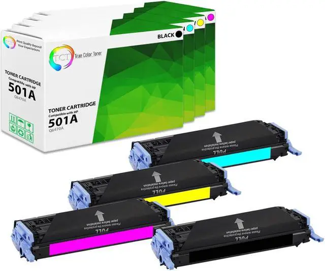 TCT offers quality HP 501A Q6470A Q6471A Q6472A Q6473A compatible replacement cartridges that fit effortlessly into your printer. You will find crisp, clear prints with consistently dark tones and sharp images in every single print job. Get professional quality prints every time and save a bundle with True Color Toners high quality printing supplies!