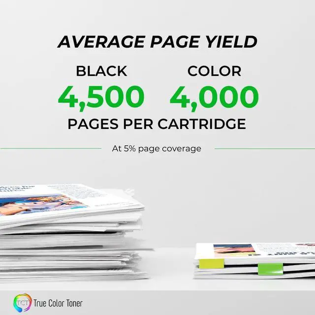 | Page Yield | Black - 4,500 Pages, Color - 4,000 Pages | 4,000 Pages | 4,500 Pages | 4,000 Pages | 4,000 Pages | 4,000 Pages |