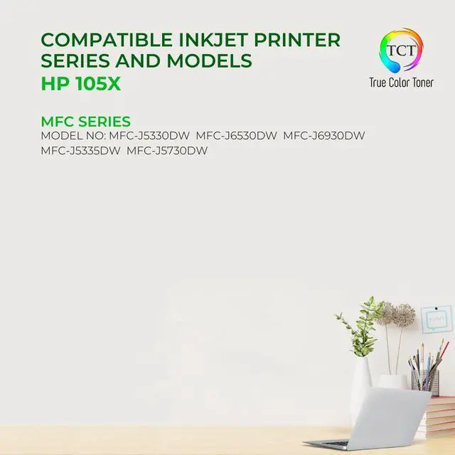 TCT offers quality HP 105AJ W1105AJ / 105X W1105X High Yield compatible replacement cartridges that fit effortlessly into your printer. You will find crisp, clear prints with consistently dark tones and sharp images in every single print job. Get professional quality prints every time and save a bundle with True Color Toners high quality printing supplies!