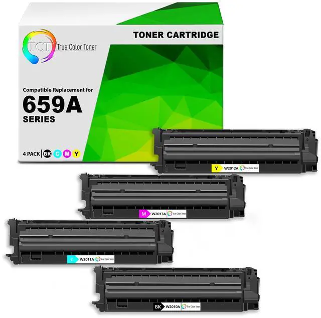 TCT offers quality HP 659A W2010A W2011A W2012A W2013A compatible replacement cartridges that fit effortlessly into your printer. You will find crisp, clear prints with consistently dark tones and sharp images in every single print job. Get professional quality prints every time and save a bundle with True Color Toners high quality printing supplies!
