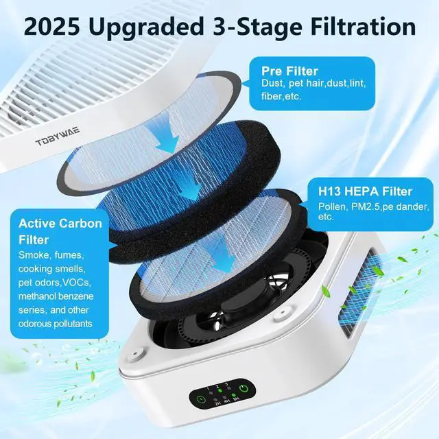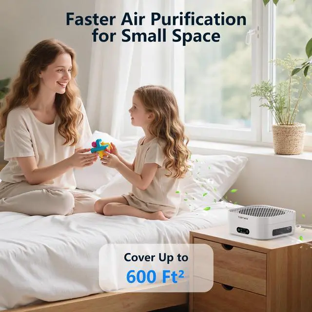 Air purifier for bedroom captures seasonal pollen, dust, and other airborne particles, helping to maintain cleaner and more comfortable indoor air.