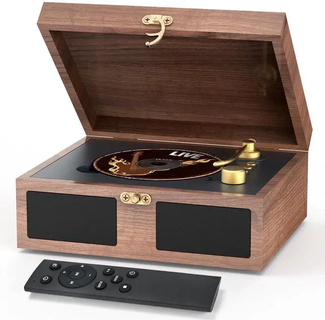 The overall appearance is inspired by the design of a retro record player, and the golden tonearm brings a sense of luxury. Move the tonearm to play music or audio book.