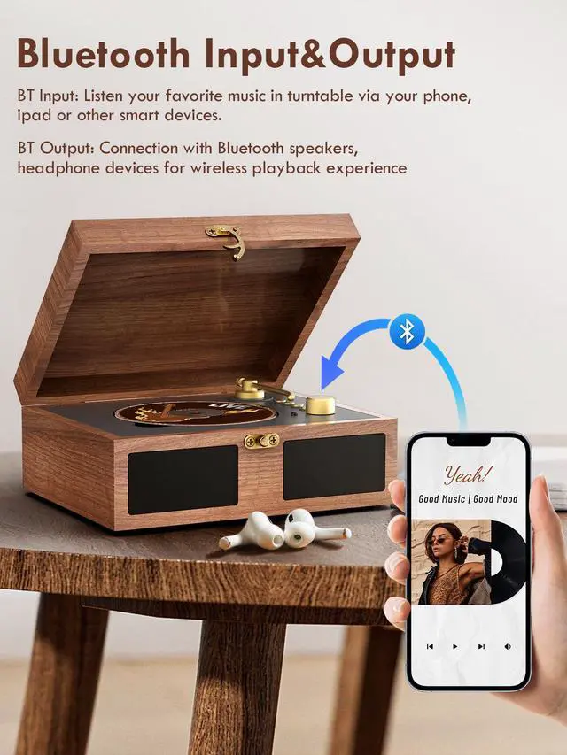 Support BT Input & BT Output. Enjoy your favorite music in CD player via smartphone etc, or Connect your Bluetooth speaker, wireless headphones via Bluetooth for a better experience.