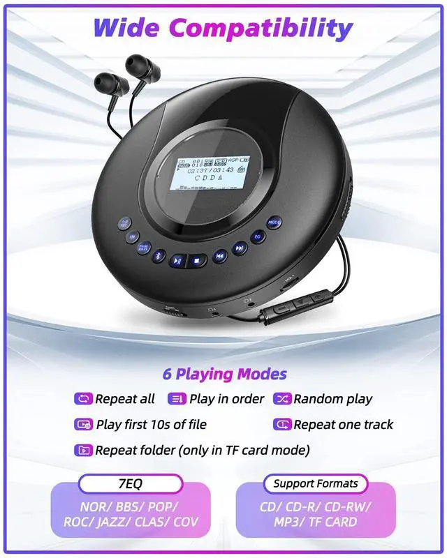 - Bluetooth Transmitter: This cd player bluetooth can pair with Bluetooth speakers, headphones.