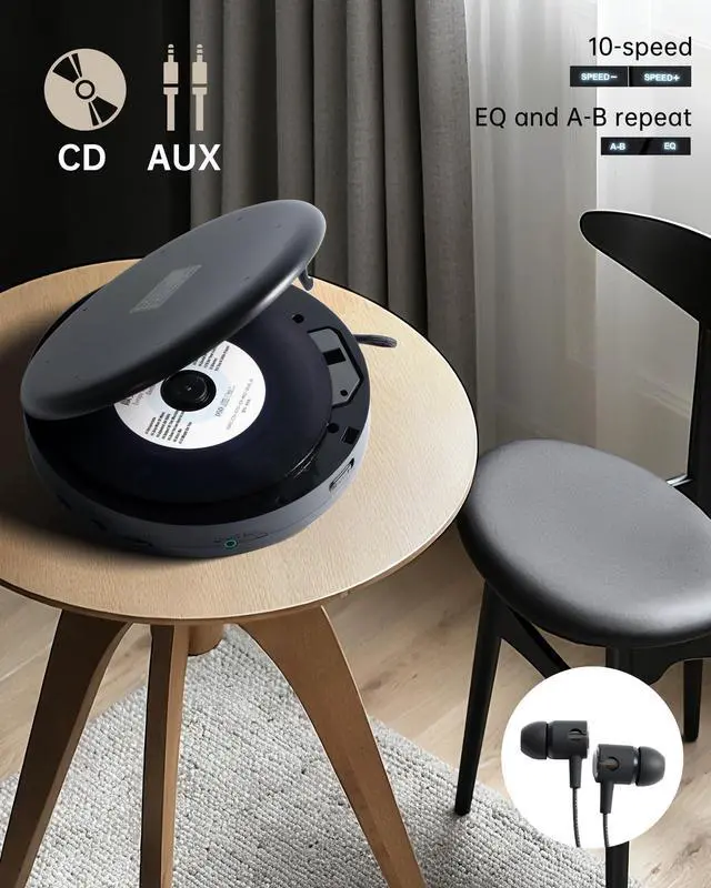 Description: Rediscover the joy of physical music media with this beautifully designed CD player. Perfect for music collectors and those who appreciate the tactile experience of playing CDs, while still offering modern conveniences. Classic Features: • Traditional CD Playback - Pure, uncompressed audio quality • EQ Settings - Customize your sound profile • A-B Repeat - Perfect for language learning and music practice • Physical Controls - Intuitive, tactile operation