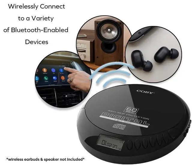 • RETRO CD PLAYER WITH BLUETOOTH FUNCTIONALITY The Coby Portable Bluetooth CD Player brings back the joy of classic music with a modern wireless twist. Connect to Bluetooth speakers, earbuds, or car audio systems, or use the included wired headphones for clear, distortion-free sound anywhere. Ideal for travel, home, or office use.