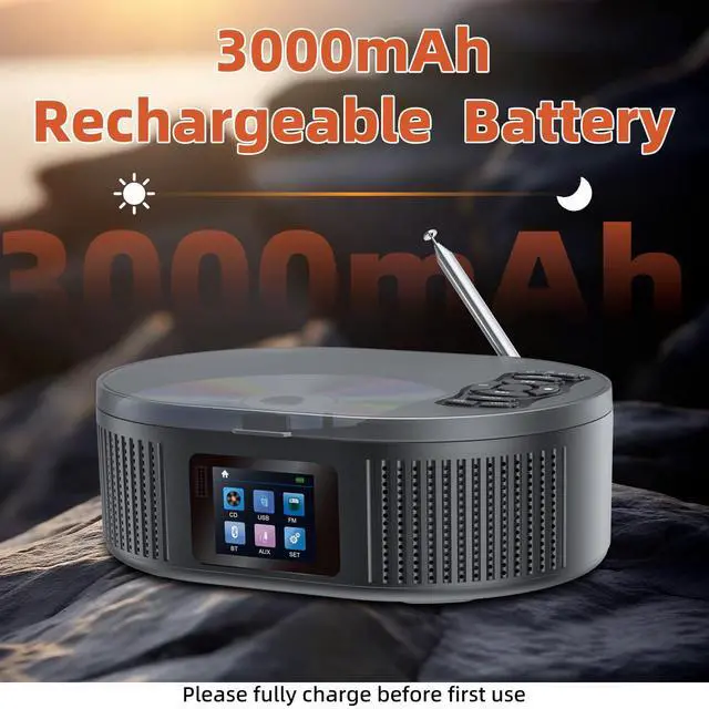 Desktop CD Player RechargeableDesobry portable CD player has the rechargeable function. It can use without connect to the power, so you need to bring it out easily. The type-C to USB charging cable is provided. The romote control comes with small cd player can let you feel free to switch playback modes; radio programs; volume adjustment; and other operations conveniently eventhough you are not arround it.