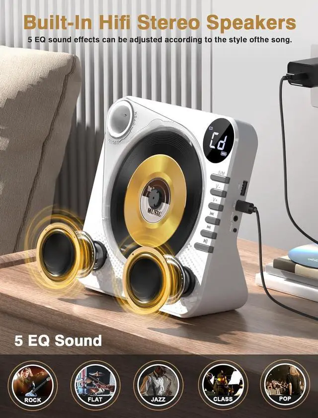 The CD player needed to be plugged in to play (Type-C power cord and 5V 2A adapter, Adapter Not Including)