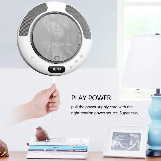 Elegant Design Wall mounted and creative pull switch design, makes it easier to be mounted on the wall. The wall mounted CD Player also comes with a compact stand, you can place the CD player in the living room, dining room, bedroom, gym or wherever you prefer. Pull the power cable to turn it on, and convenient for you to enjoy a musical lifestyle.