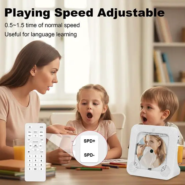 Yes,we can use the remote control to adjust the playback speed for CD/USB.Say slow dow playback when listening to some soothing music or doing pronoucation practice