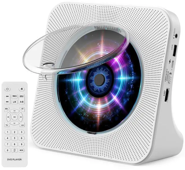 Amazing Design:Desktop CD Player come with upgraded 75° angle desktop vertical design for standing more stably and elegant white square appearance,meanwhile the dust cover could prevents CD players from dust issues trouble.