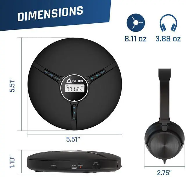 The KLIM Discman is compatible with CD, CD-R, HDCD, MP3 and WMA.