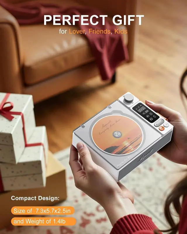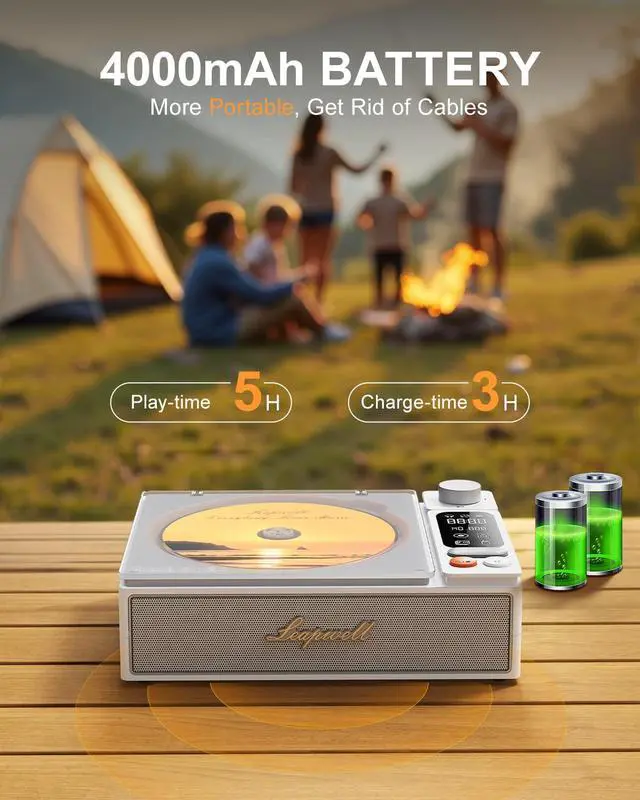 Leapwell Portable CD Player Bluetooth with Speakers CD Players for Home Classic Design White