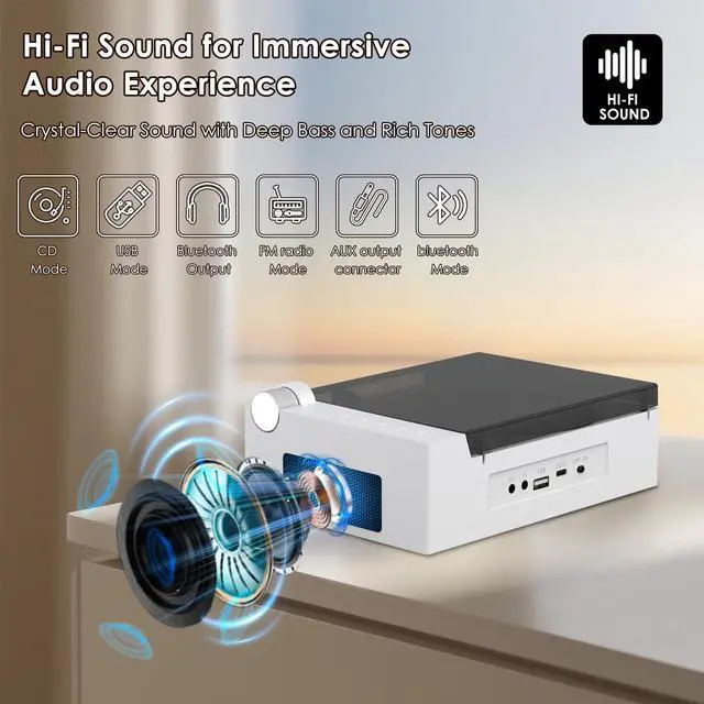 Experience your favorite music on the go with this versatile portable CD player. Perfect for music enthusiasts who appreciate the rich, authentic sound of CDs, this compact player lets you enjoy your treasured music collection wherever life takes you. The portable design makes it ideal for travel, commuting, or simply moving from room to room. Whether you're rediscovering classic albums or enjoying new releases, this CD player delivers clear audio output for an immersive listening experience. Its user-friendly controls make it easy to navigate through tracks and adjust settings to your preference. Keep your music close at hand and relive the magic of your CD collection with this reliable portable player that bridges the gap between classic audio quality and modern mobility.