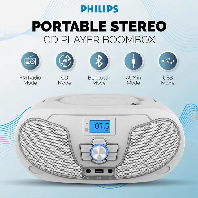 Versatile Playback Options Enjoy your favorite tunes from CD, USB, or AUX-in. Supports MP3-CD, CD-R/RW, and USB playback up to 32GB, letting you play music from multiple sources effortlessly. Perfect for home, classroom, or travel use.