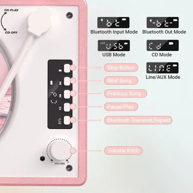 Retro Charm Meets Modern Bluetooth ConvenienceFall in love with the classic look of this retro cd player that adds a touch of vintage elegance to any room.But don't let the looks fool youthis bluetooth cd player is packed with modern features!Stream music wirelessly from your phone via Bluetooth 5.0,or enjoy the authentic experience of playing your favorite CDs.This portable cd player with bluetooth effortlessly bridges the gap between nostalgic style and today's wireless convenience.