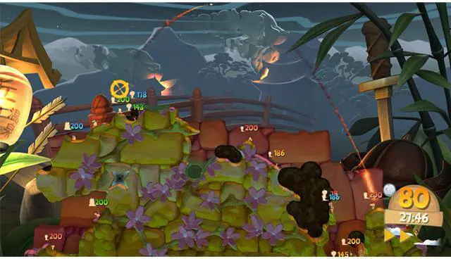 | Feature 2 | Slick Single Player Gameplay Too Story Mode' adds a ton of variety by introducing physics based contraptions for the first time ever. A plethora of interesting machinery spices up the gameplay, and makes solo Worms much more fun! The single-player game isn't only about dealing death and destruction, it's also about negotiating tricky swinging rope bridges and rescuing friendlies from death defying traps! The player spends much more time playing, and much less time waiting for their A.I. opponent to take a shot. Get Busy With Steam Workshop Fancy yourself as the artistic type? Steam Workshop integration allows you to get creative! Now you can make your worms wear exactly the outfits that you want them to. Import your own 3D objects and textures into the game using a separate tool. You can model hats, glasses, moustaches, trinkets and gravestones for your worms. You can also design your own landscapes! Proud of your creations? You can share them online, thanks to Steam Workshop! 65 Weapons and Utilities including 10 outrageous new items: Mega Mortar, Gravedigger, Winged Monkey, Oxygen, Worm Charm, Bovine Blitz, Whoopsie Cushion, Teleport Raygun, Aqua Pack and The Equiliser. |