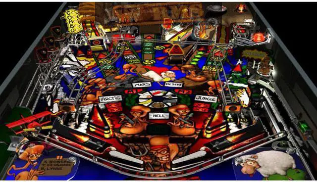 | Feature | The Worms crew returns, and this time they've got balls! The classic Worms Pinball sends the cute little pink guys spinning across one of the most realistic pinball tables ever created. Battle with honour through the mystic art of Worms Kung-Fu or hang at high noon with the grizzliest, pinkest cowboys this side of Texas. Only Worms Pinball offers an action packed pinball simulation of pure wormage! Worms Pinball leaves nothing to the imagination. The table sports 3D LED displayed sub-games and parallel objectives, transparent ramps, user-controllable moving gadgets, moving mechanical parts and wild sound effects and music. The table contains over 150 animated parts and thousands of frames of rendered FMV animation for the LED display. It's got tilt functions, hit combinations as well as drop and dead catches, bounce and flip passes, bang backs, death saves, magnetic fields and countless other exciting features. The depth of gameplay, variety of action and sophisticated table rules ensures that Worms Pinball will have all gamers, not just hard-core pinheads, hooked. Realistic and dynamic physics simulation. The vector-based ball accurately reflects its surroundings adding to the immersive quality of playing in a real world environment. Impulse, inertia, acceleration, momentum, torque, all these real world physical qualities are simulated to produce outstanding realism. Atmospheric lighting/reflection/shadow effects Multiple Full screen views and tilt function for superb gameplay. Up to six multi-balls simultaneously Accurate and flexible vector-based ball and flipper simulation Sophisticated data compression techniques allowing several thousand frames of rendered FMV animation for the scoreboard and table Fantastic hidden sub-games |