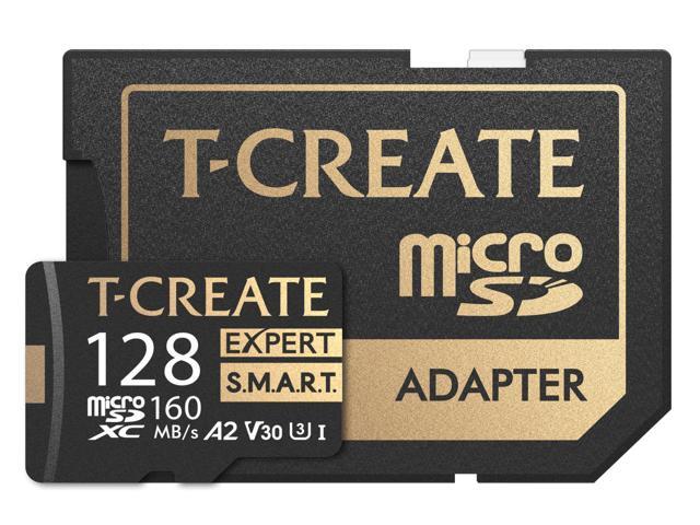 TEAMGROUP 128GB T-Create Expert S.M.A.R.T Monitored A2 microSDXC UHSI-I/U3 V30 4K High speed memory card with adapter, Compatible with GoPro, Insta360, Speed up to 160MB/s (TTCS128GIA2V3003)