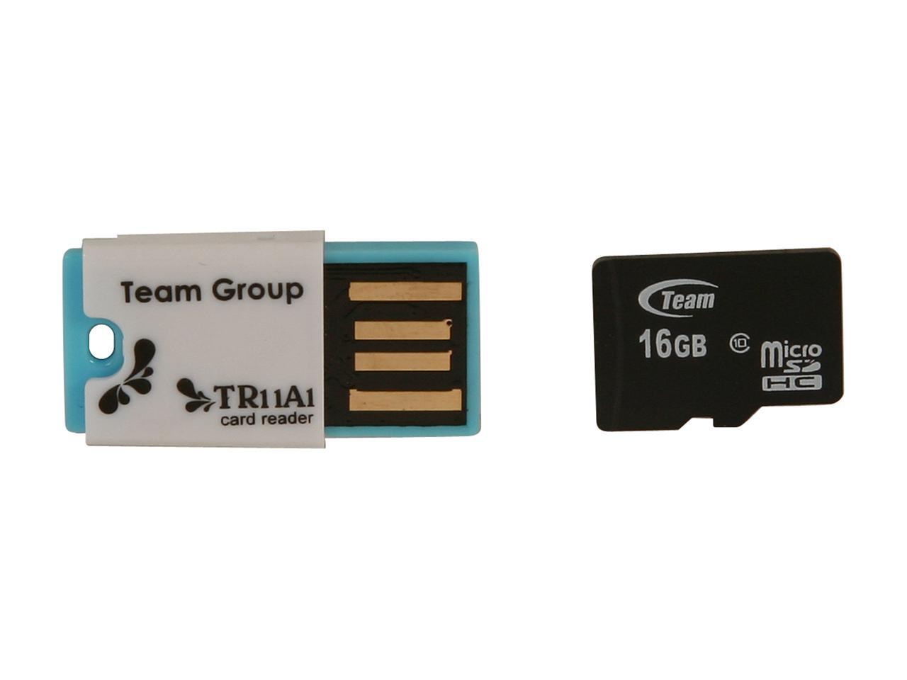 Team 16GB microSDHC Flash Card w/ USB2.0 Micro SD Card Reader TR11A1 Model TG016G0MC28C