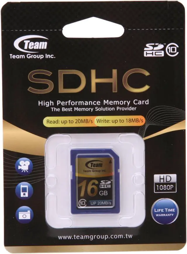 Capture every exciting moment. Compliant with SD v3.0 standard and backward compatible with SD v2.0 standard, the Team SDHC Class 10 memory cards is perfect for high-level consumer electronics, computing and communication products with a minimum 13MB/s writing speed on equipment using SD v2.0 and a maximum 20MB/s writing speed on photographic equipment using SD v3.0. Available from 4GB to 32GB, you can choose one to fit your personal needs.