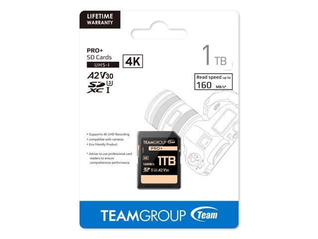 Team Group 1TB PRO+ SDXC U3 V30 A2 4K SD Card, Read/Write Speed Up to 160/90MB/s (TPPSDX1TIA2V3001)