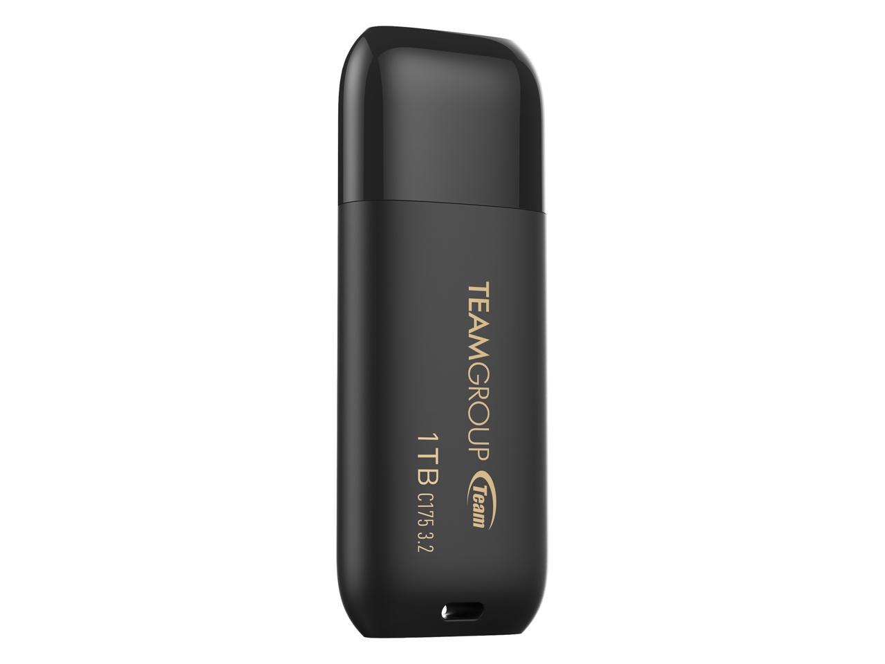 TEAMGROUP C175 1TB USB 3.2 Gen 1 Flash Drive Rounded Streamlined Unibody Design Black Pearl Seamless Construction Matte and Glossy Finish, Speed Up to 100MB/s (TC17531TBB01)