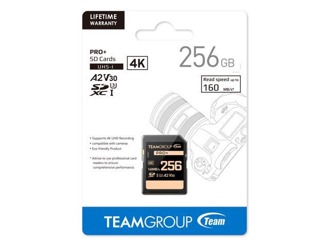 Team Group 256GB PRO+ SDXC U3 V30 A2 4K SD Card, Read/Write Speed Up to 160/90MB/s (TPPSDX256GIA2V3001)