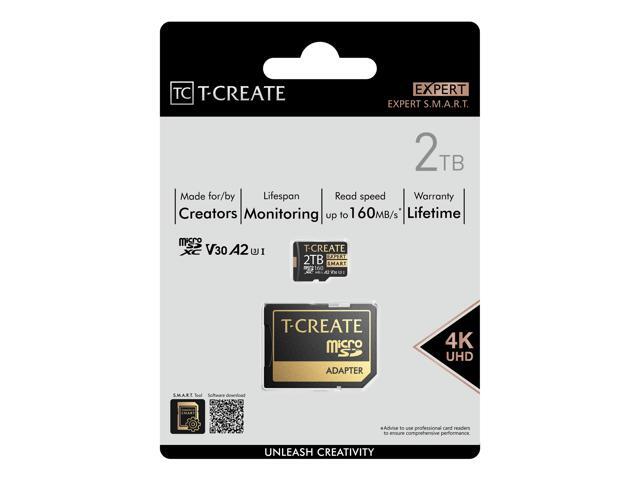 TEAMGROUP 2TB T-Create Expert S.M.A.R.T Monitored A2 microSDXC UHSI-I/U3 V30 4K High speed memory card with adapter, Compatible with GoPro, Insta360, Speed up to 170MB/s (TTCS2TIA2V3003)