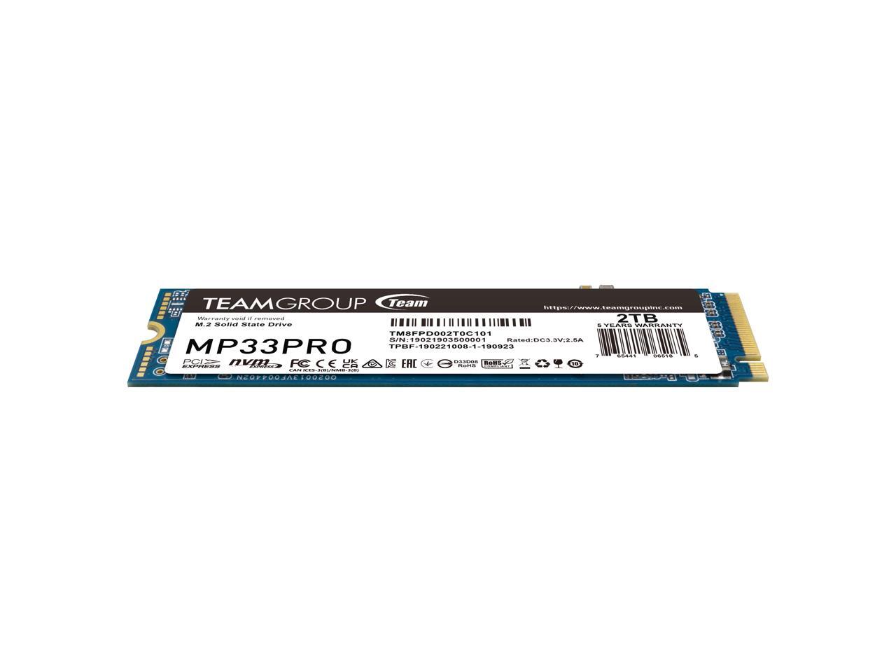 Team Group MP33 PRO M.2 2280 2TB PCIe 3.0 x4 with NVMe 1.3 3D NAND Internal Solid State Drive (SSD) TM8FPD002T0C101