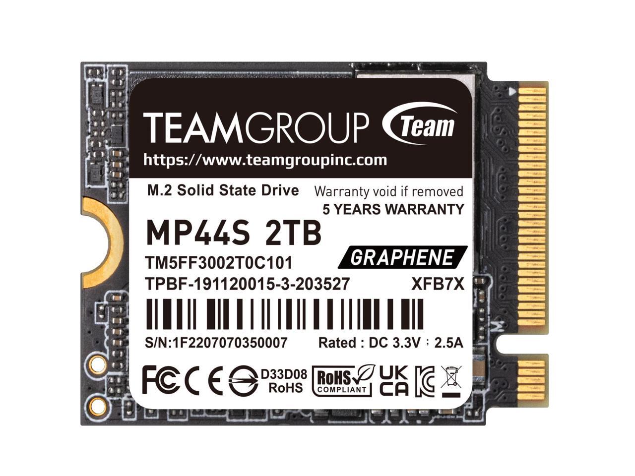 Team Group MP44S M.2 2230 2TB PCIe 4.0 x4 with NVMe, STEAM Deck Compatible, Internal Solid State Drive (SSD) TM5FF3002T0C101