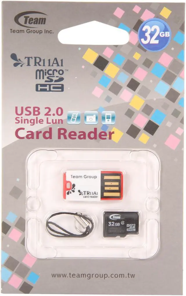 Also included is the Team TR11A1, a USB2.0 card reader supporting Micro SDHC memory cards. It is mini, slim and convenient to carry with its thread hook. The Team TR11A1 allows you to conveniently transfer data from the memory cards to your PC and makes your digital life much easier.