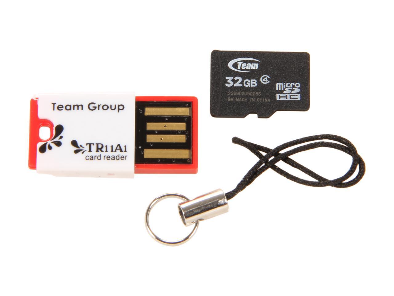 Team 32GB microSDHC Flash Card with USB Card Reader (Red) Model TUSDH32GCL430