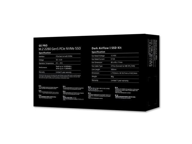 Team Group T-FORCE GE PRO M.2 2280 4TB PCIe Gen 5.0x4 with DRAM CACHE with NVMe 2.0 3D NAND Internal Solid State Drive (SSD) with AirFlow 1 TM8FG3004T0C133