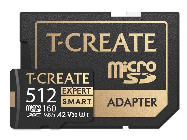 TEAMGROUP 512GB T-Create Expert S.M.A.R.T Monitored A2 microSDXC UHSI-I/U3 V30 4K High speed memory card with adapter, Compatible with GoPro, Insta360, Speed up to 160MB/s (TTCS512GIA2V3003)