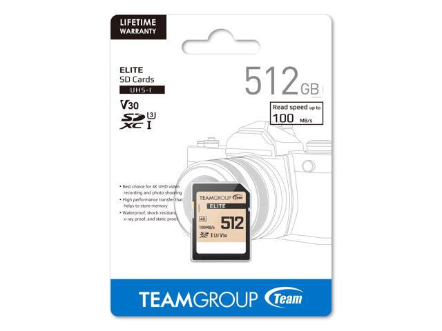 Team Group 512GB Elite 4K SD Card UHS-I U3 V30 Read/Write Speed Up to 100/90MB/s (TESDXC512GIV30P69)