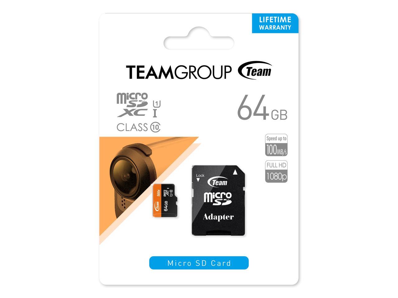 Team 64GB microSDXC UHS-I/U1 Class 10 Memory Card with Adapter, Speed Up to 100MB/s (TUSDX64GUHS03)