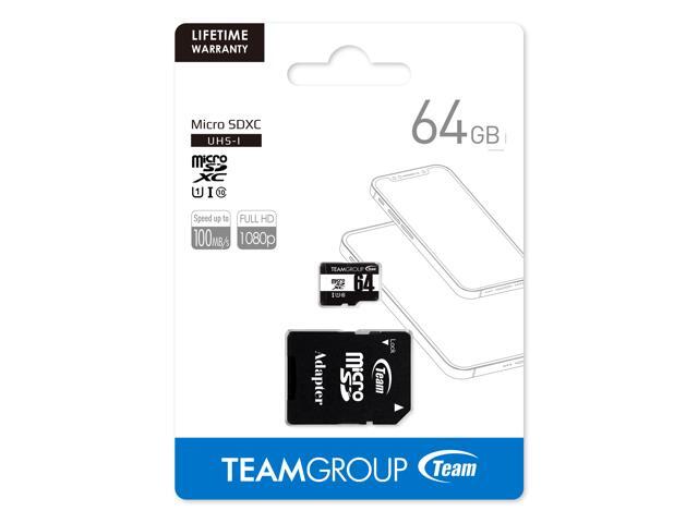 Team 64GB microSDHC UHS-I/U1 Class 10 Memory Card with Adapter, Speed Up to 100MB/s (TUSDX64GCL10U03)
