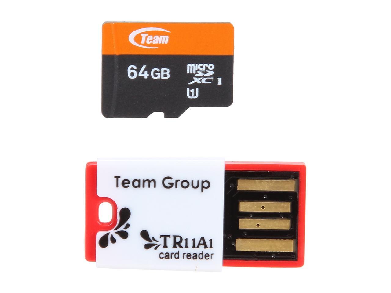 Team Xtreem 64GB microSDXC Flash Card With Card Reader Model TUSDX64GUHS30