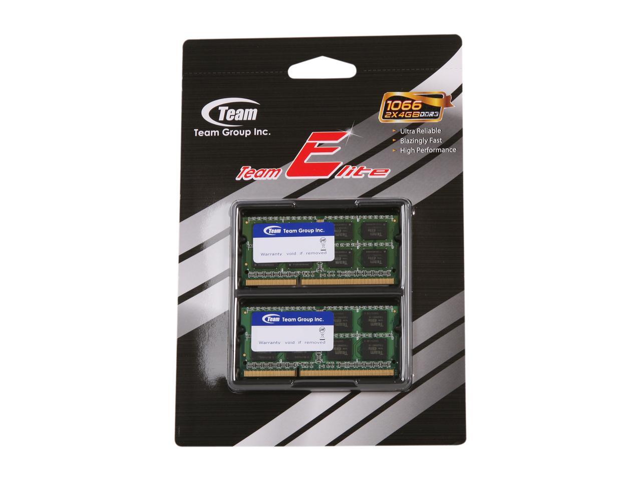 Team 8GB (2 x 4GB) 204-Pin DDR3 SO-DIMM DDR3 1066 Laptop Memory Model TSD38192M1066C7DC-E