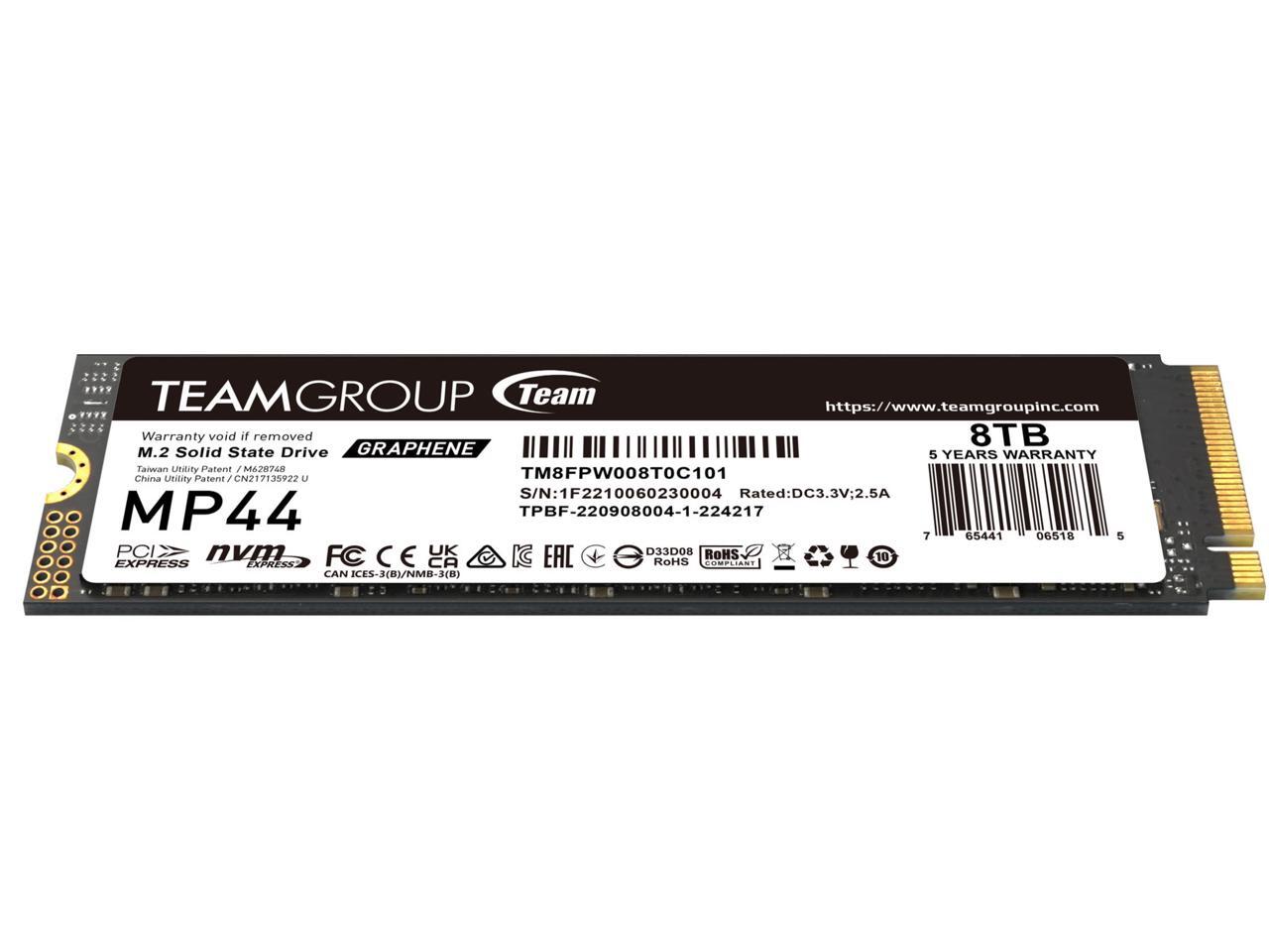 Team Group MP44 M.2 2280 8TB PCIe 4.0 x4 with NVMe Laptop & Desktop & NUC & NAS Internal Solid State Drive (SSD), (R/W Speed up to 7,400/6,000MB/s) TM8FPW008T0C101
