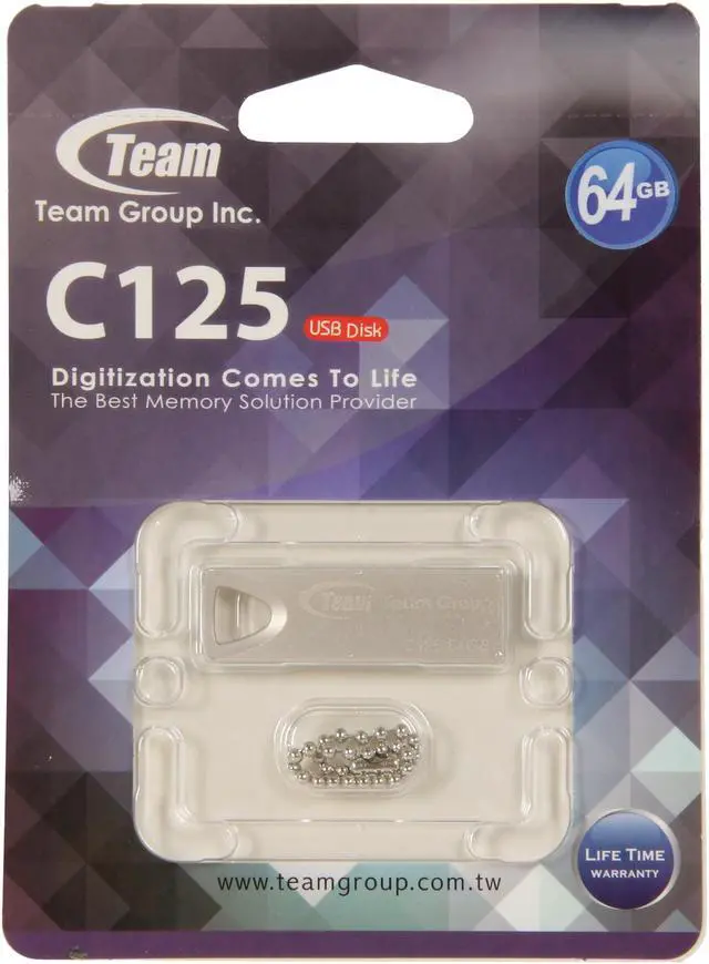 Team C125 is a USB flash drive with simple design and metallic texture. Sand-blasted finishing features resistance to scratches and durability. Its unique tail shape allows the device to double as a key chain or pendent.