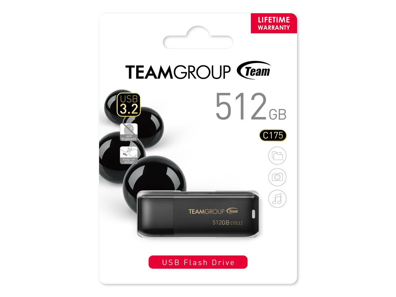 TEAMGROUP C175 512GB USB 3.2 Gen 1 Flash Drive Rounded Streamlined Unibody Design Black Pearl Seamless Construction Matte and Glossy Finish, Speed Up to 100MB/s (TC1753512GB01)