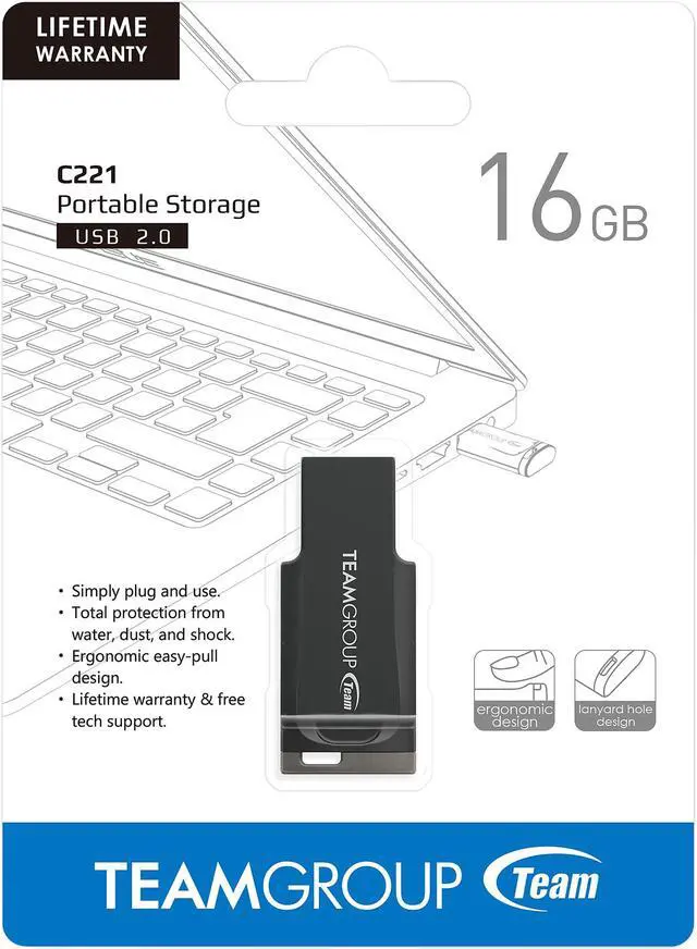 The C221 flash drive has a cap-free design for simple plug and use and a lanyard hole that makes it perfect on the go.