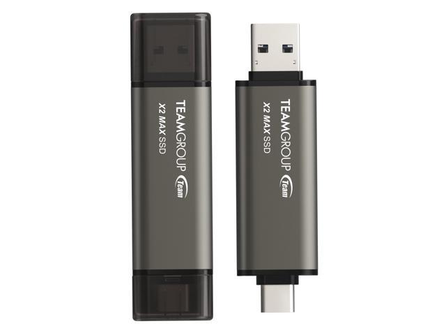 TEAM X2 MAX DRIVE 2TB Titanium USB 3.2 Gen2 External Solid State Flash Drive, Dual Interface Type-C and Type-A, Compatible with Smartphone/Tablet/Laptop/PC/Chromebook, Speed Up to 1000MB/s (TX2MAX32TBT01)