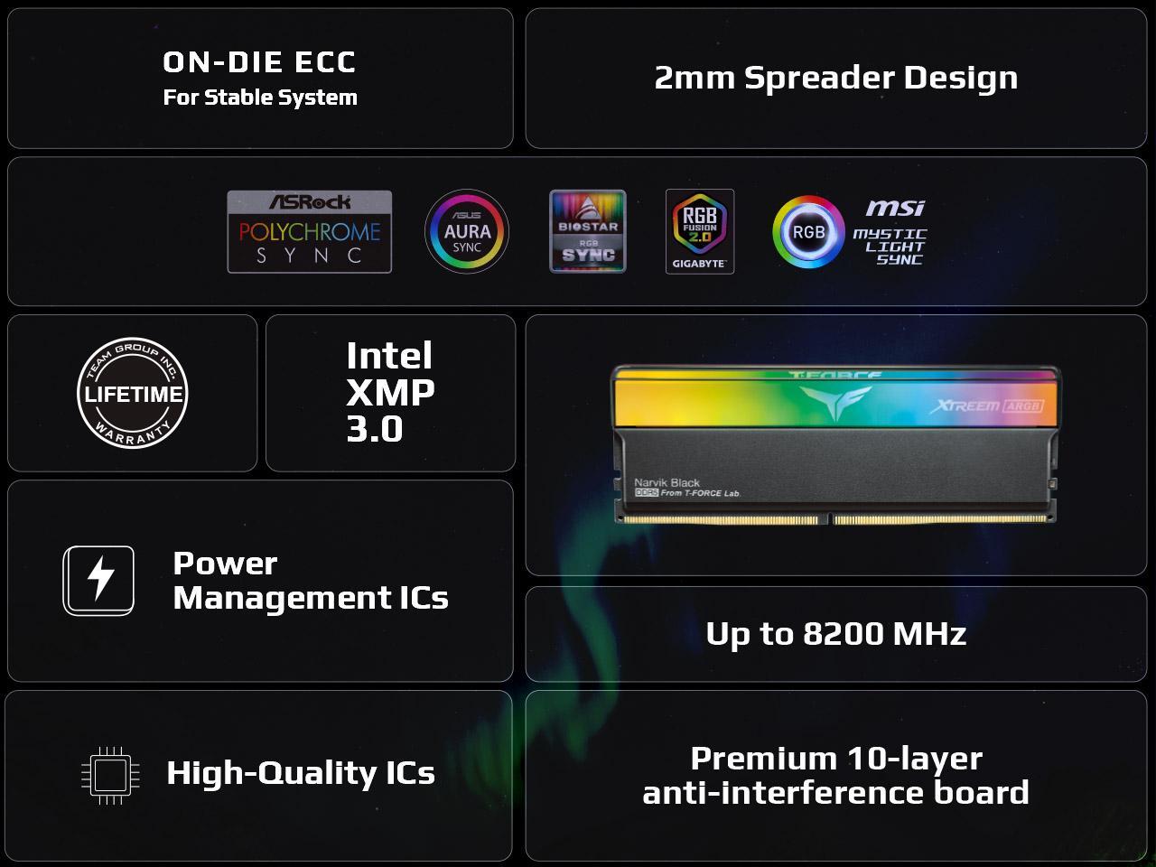 Team XTREEM ARGB 48GB (2 x 24GB) 288-Pin PC RAM DDR5 8000 (PC5 64000) Desktop memory Model FF9D548G8000HC38EDC01