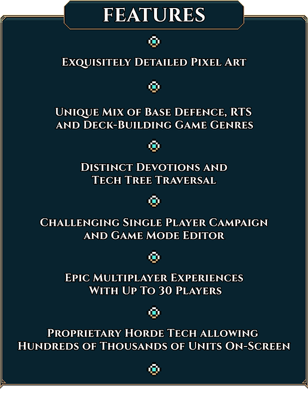 Challenge yourself in a single player campaign featuring 30+ scenarios, or create your own using the in-game editor. The single player campaign makes it easy to learn the basics, understand how the devotions differ from one other and really hone the craft of a mighty mage.