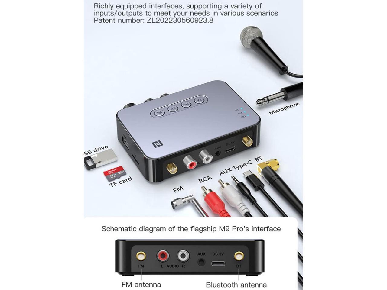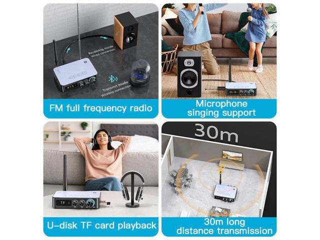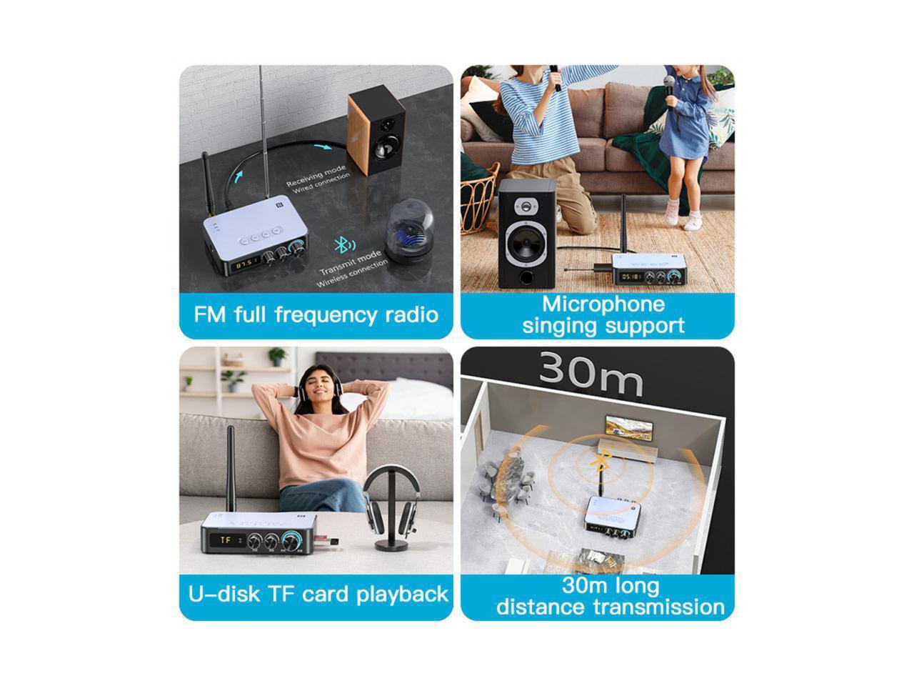- [KTV singing, FM radio function] It has RCA and AUX input and output connections, and supports FM antenna, Bluetooth antenna and 6.5mm microphone interface. Compatible with 99% TVs, suitable for family KTV singing parties..