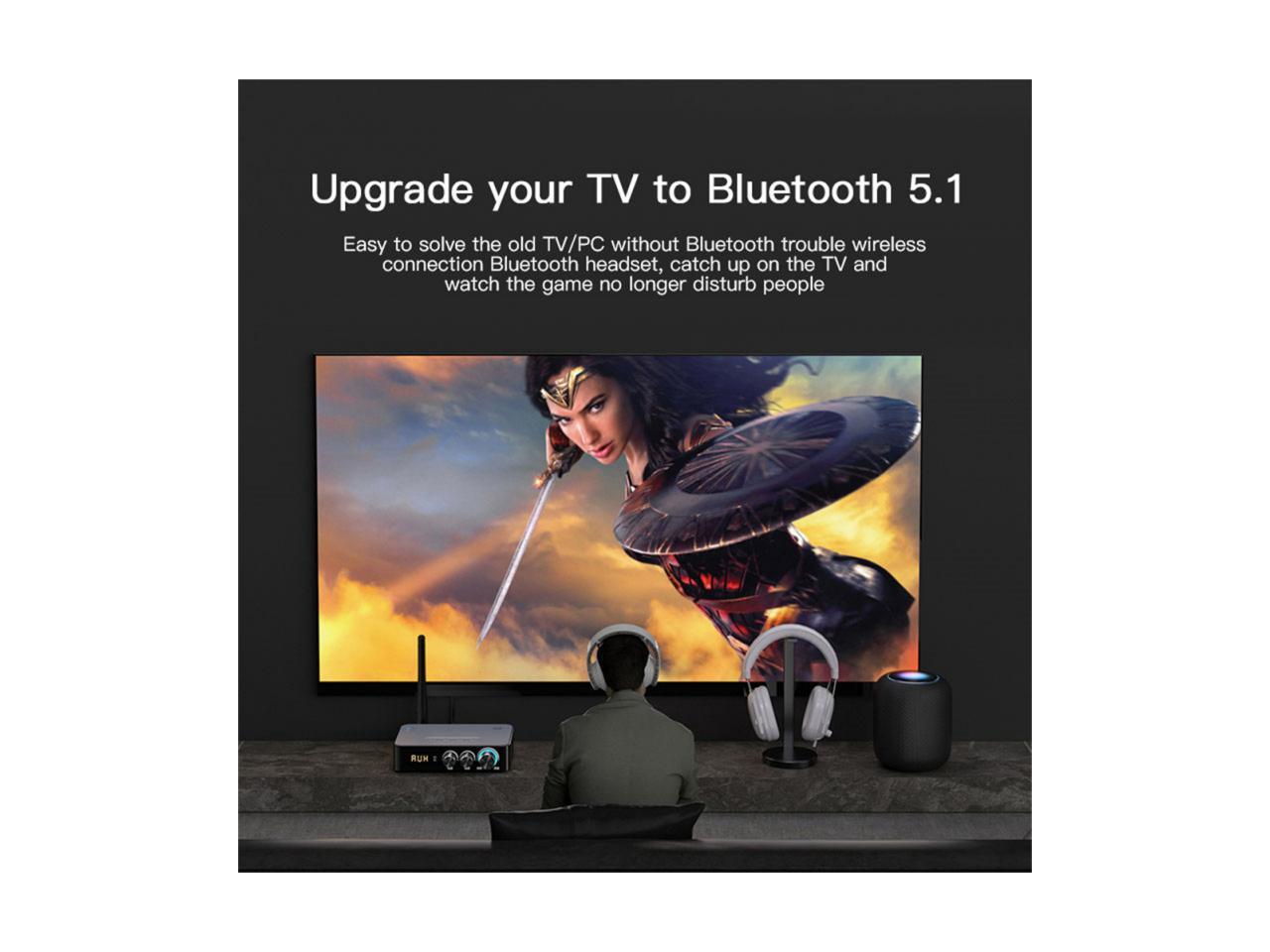 - [4 in 1 Bluetooth Transmitter] Can be used as a Bluetooth transmitter and a Bluetooth receiver. In TX mode, the bluetooth adapter converts wired audio source to wireless audio for bluetooth speaker/etc bluetooth audio output. In RX mode, it supports wired audio output from CD players/home audio/car audio, and plays wireless audio from Bluetooth audio sources.
